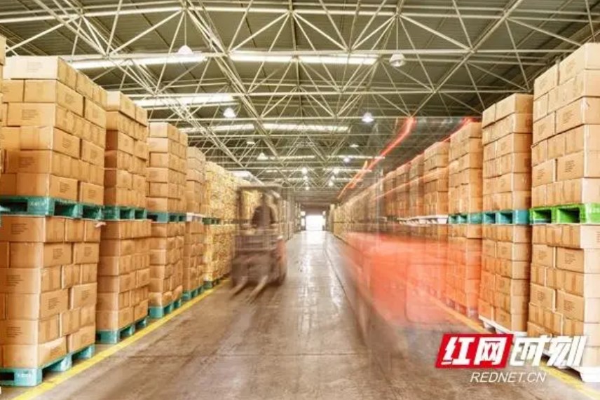 長沙實(shí)現(xiàn)書刊印刷年產(chǎn)能提高到3000多萬令紙,日成書1200多萬本,綜合競爭力指數(shù)位列全國第三。圖為天聞?dòng)?wù)成品倉庫。